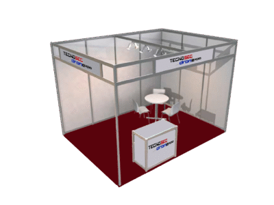 Medidas: 4×3 m. Altura de 2,80m. (Stand 24m2: 2xpack 12 m2) Incluye: Moqueta Vinilado de 2 Frontis y mostrador con logo. Cuadro Eléctrico de 3kW... Read More